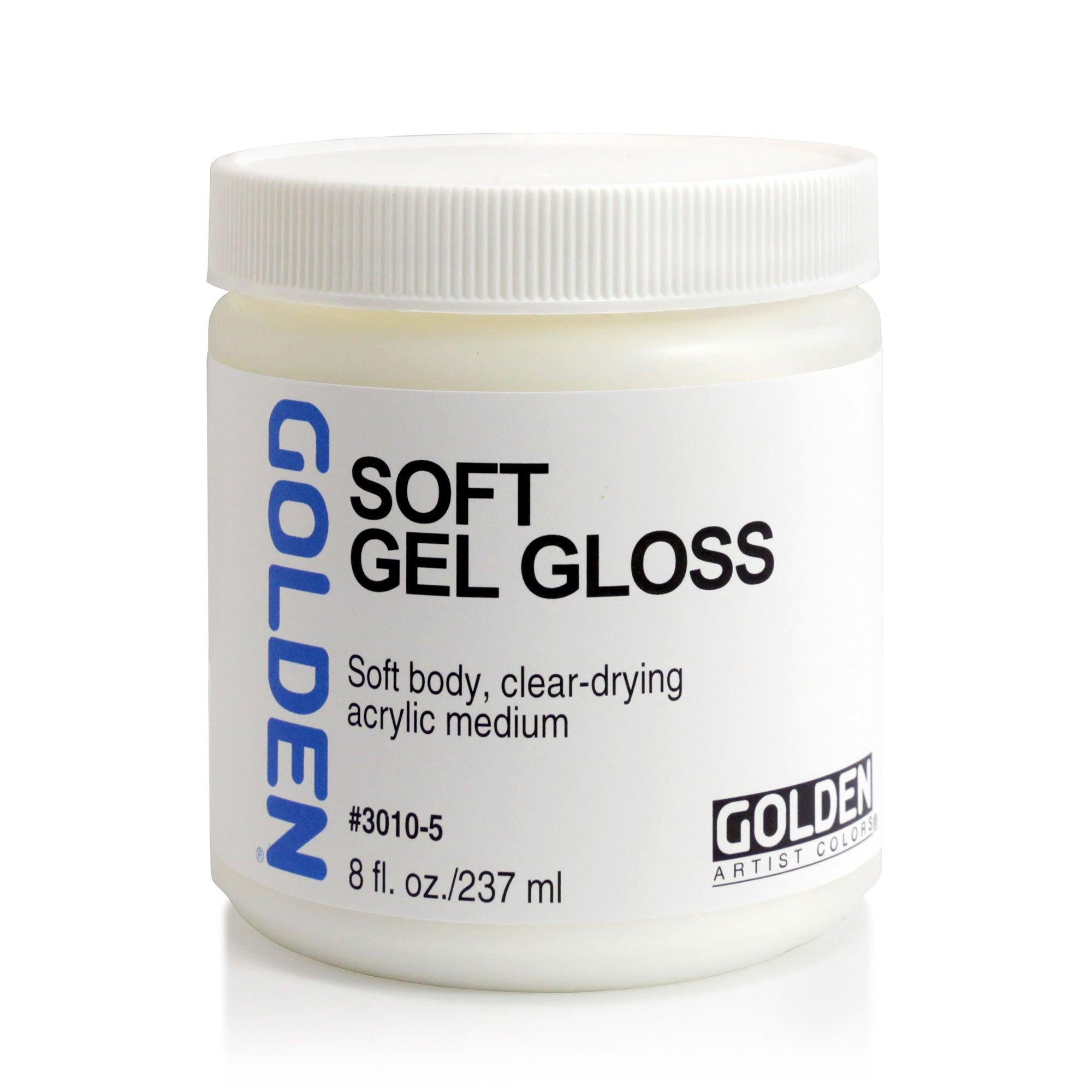 Golden Soft Gels are thinner than Heavy Body Acrylics. Mix with acrylic colours to produce a brilliant glaze. Soft gels can be used as a base for wet blending or as an adhesive for collage.