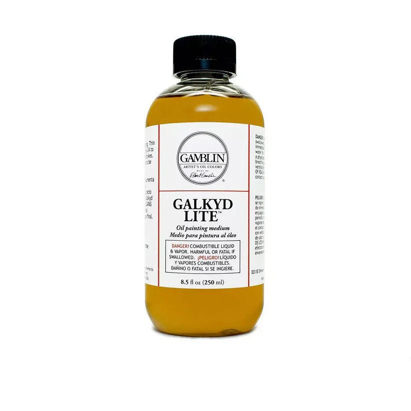 Galkyd Lite contains Gamsol. The main difference between Galkyd Lite vs. Galkyd is that Galkyd Lite contains more Gamsol, making it a thinner and more fluid consistency. You can dilute Galkyd Lite with additional Gamsol, this is recommended for underpainting and fluid washes.