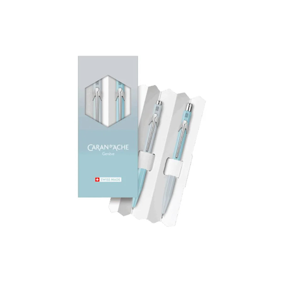 Caran d'Ache unveils Blue Lagoon, an exclusive set consisting of an 849™ ballpoint pen and mechanical pencil, both inspired by the pastel colours of a blue lagoon, enhanced by a subtle yet captivating colour gradation.