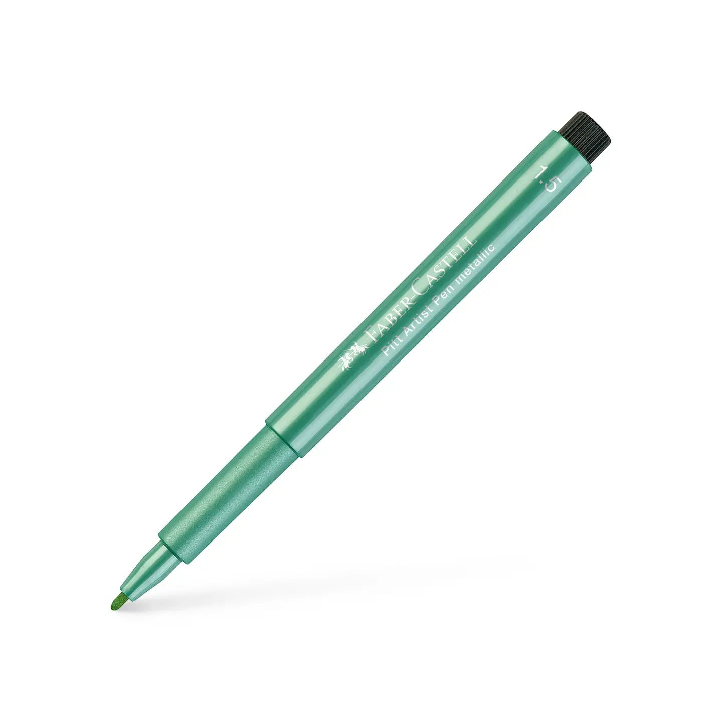 Pitt Artist Pens in metallic colors offer odorless, permanent and water-resistant inks that will not bleed through paper. The pigmented India inks are lightfast, acid-free and pH Neutral. No need to pump, prime or shake. They work beautifully on all types of papers. High opacity even on dark paper. Available individually or in assorted sets. Store horizontally when not in use. Bullet nib is 1.5 mm.