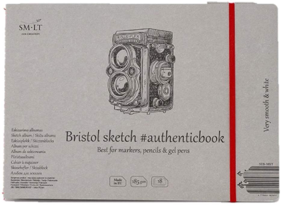 The SMLT Bristol Sketch Album comes in a 100% recycled cover and features extra white, smooth paper. Ideal for dry media techniques. 185 GSM, 18 sheets.