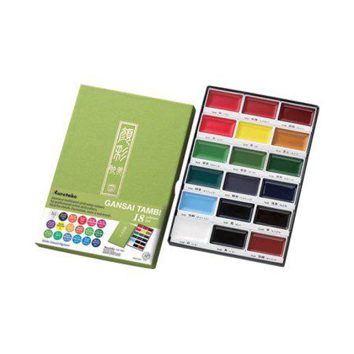 Kuretake Gansai Tambi Watercolour Sets feature large pans of vivid, creamy traditional Japanese watercolours ideal for sketching, illustration, calligraphy, and more.