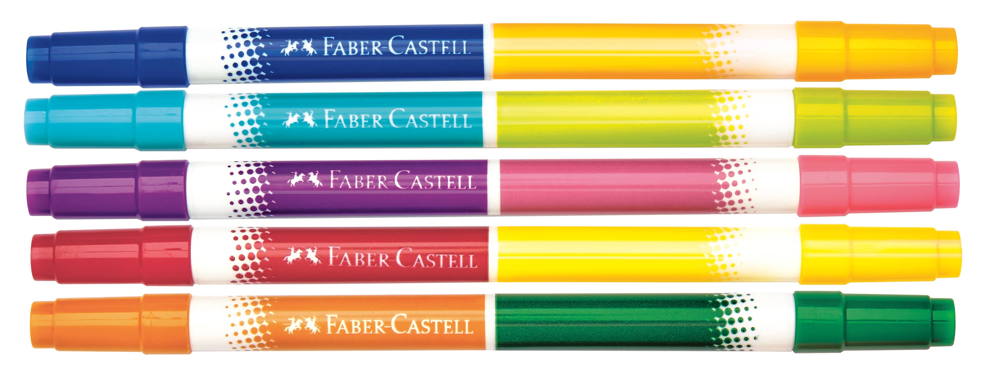 Kids will love to colour this beautiful colour-by-number butterfly artwork and hang it on their walls. This guided art activity will appeal to kids who are interested in art and want to create a "masterpiece". The numbered colour guide is printed separately from the canvas to allow young artists to follow the guide or colour the picture in their own creative way. The brightly colored Faber-Castell duo tip markers have a ventilated safety cap to prevent choking. The water-based inks wash out of most fabrics. The pen tips allow you to achieve 2 line widths: thin and broad.