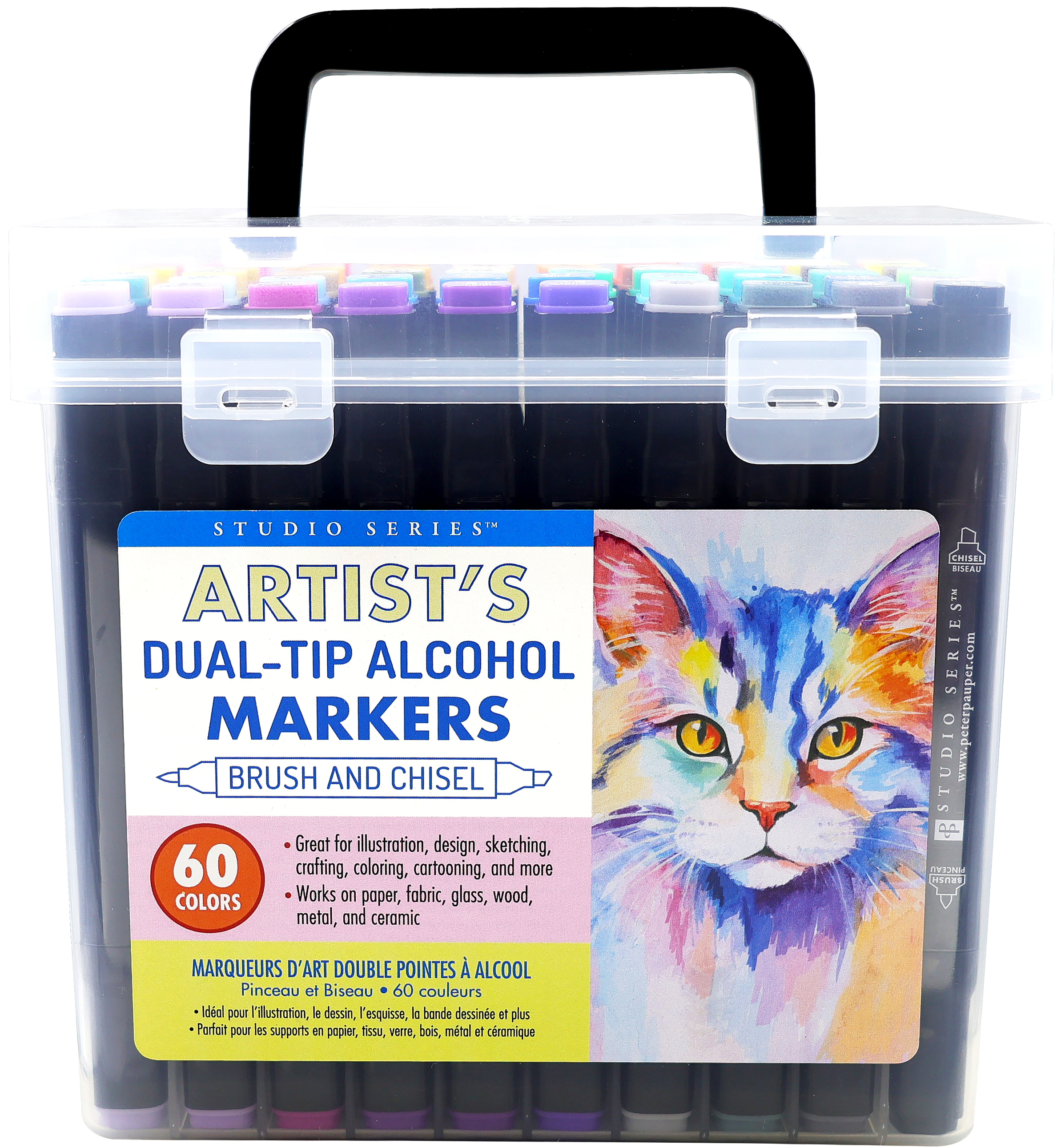 Create smooth, vivid areas of colour and blend for stunning shading and delicate watercolor effects! Versatile set of alcohol markers contains an expansive palette of 60 colours, from subtle hues to vivid brights! Each marker contains dye-based, archival-quality alcohol ink. Dual-tip design features both a chisel tip for broader coverage and a brush tip for detail work.